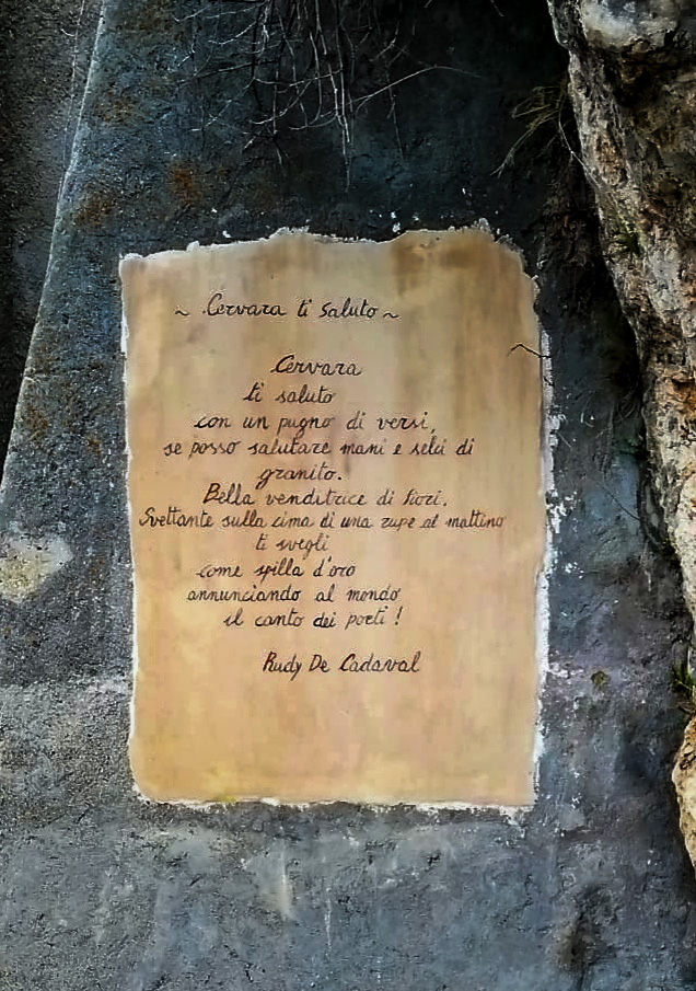Rudy De Cadaval, in una delle sue visite al paese Simbruino, definì Cervara un' antologia di pietra, proprio in virtù dei versi scritti sui muri dai poeti che l'hanno visitata , quale tributo alla ridente località.